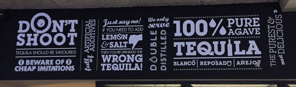 A BEAUTIFUL NOTICEBOARD in Wahaca Mexican restaurant. It’s full of great detail – note the target in Don’t Shoot, the cancel sign in Lemon, the drips in 100%, the bottle in Tequila – yet the approach is defiantly typographic. Remember, the designer started with nothing but a list of phrases. To have the imagination to turn a dull set of […]