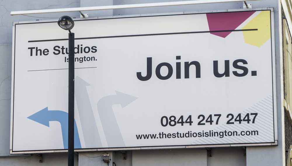 AN UNFORTUNATE SITING for a lamp post, covering up the name of the company. It could happen to anyone. Except that this poster only appeared in one place, the poster hoarding nearest to the Studios. Would it have been beyond the capability of the designer to check the site first?