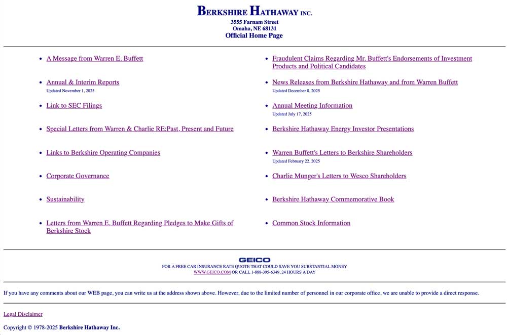 Ironically, this site is owned by Warren Buffett, one of the richest men in the world. You’d have thought he’d have gone to the expense of hiring a web designer.