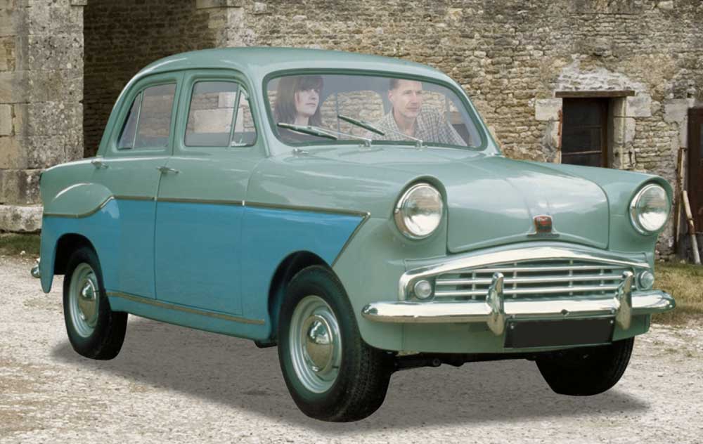 PLACING PEOPLE IN A CAR is a straightforward job for any photomontage artist, provided you can get your head around the tricky cutout of the windscreen wipers. And there’s the happy couple, front and centre.