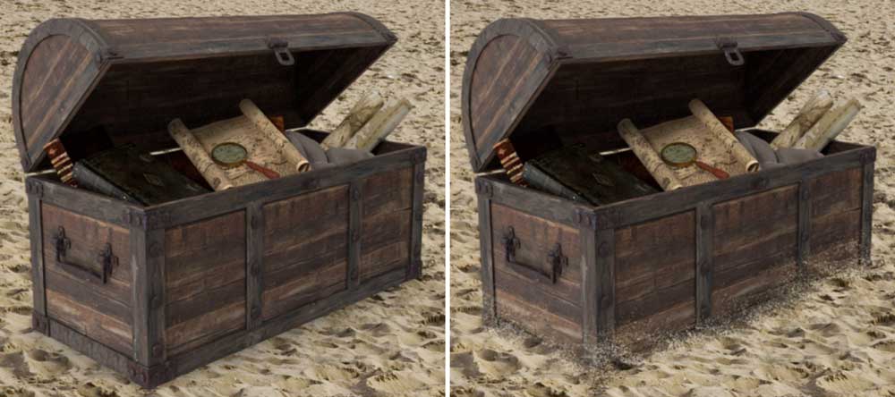 A TREASURE CHEST on a beach. What could be simpler to put together? Except this treasure chest doesn’t look like it’s on the sand. Because that’s not how sand behaves.