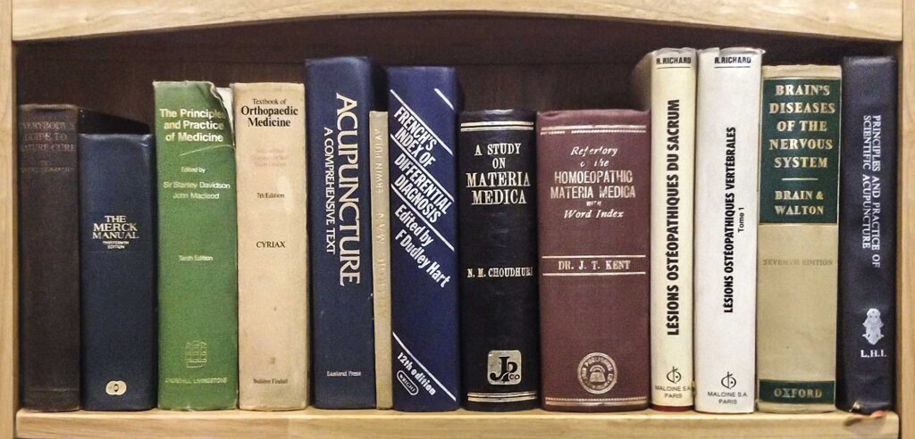 Spines vary considerably in layout and even orientation. We’ll explore the issue of spines using, appropriately, a set of books on osteopathy, homeopathy and acupuncture. If these disciplines can’t sort your spine out between them, then you may need more serious medical intervention.