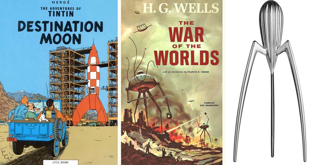 Three legs can never wobble. That’s why camera tripods have three legs. Hence Tintin’s rocket, H G Wells’ space invaders, and the Alessi lemon squeezer.